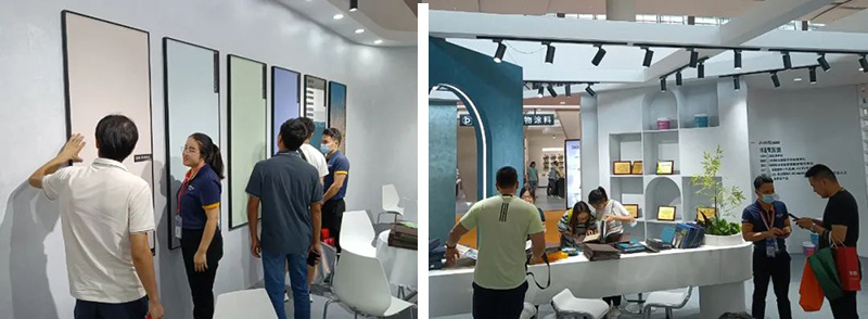在開展的首日,君匠世家藝術(shù)涂料現(xiàn)場火爆,憑借對匠心工藝的品牌定位,收獲了高關(guān)注度和火爆人氣,迎接了來自全國各地的代理商、經(jīng)銷商、業(yè)內(nèi)專業(yè)人士以及參觀觀眾,君匠世家專業(yè)銷售團(tuán)隊(duì)為到訪嘉賓講解各產(chǎn)品系列的亮點(diǎn)、品牌的深厚文化以及加盟服務(wù)模式,獲得了眾多嘉賓的認(rèn)可。