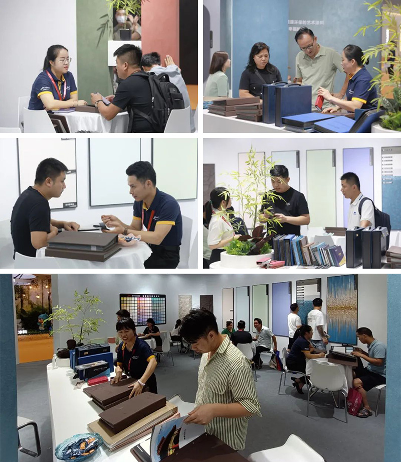 此次展館中重點(diǎn)推出了6大系列產(chǎn)品:質(zhì)感極光藝術(shù)、藝術(shù)陶晶石、巴黎印象、云錦綢緞、水晶膚感漿、豆蔻?膚感原漿,每一個(gè)系列都蘊(yùn)含著獨(dú)特的性能與靈感的融合。每款產(chǎn)品可匹配上千種色彩與工藝效果,為您創(chuàng)造出完美的藝術(shù)人居環(huán)境。
